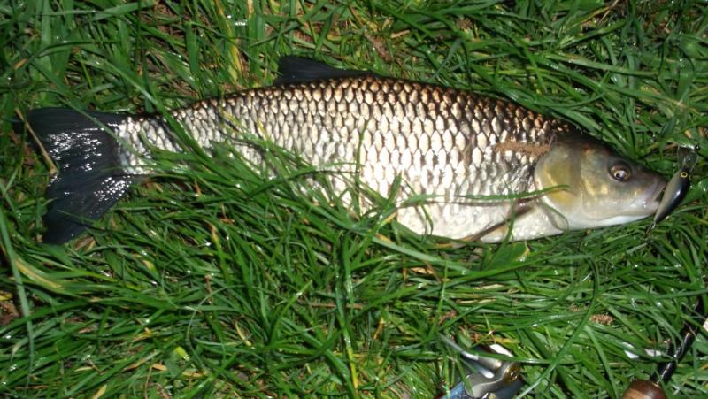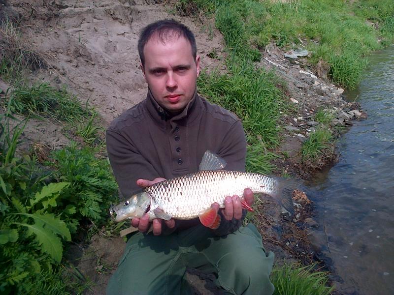 Jeden z pięciu dzisiejszych. Nie wiem ile mierzył,ale mam nadzieję,że posiada regulaminowe minimum :) Zaznaczam,że łowieniem kleni zajmuję się od...2 dni.Jest to jednocześnie mój PB :)