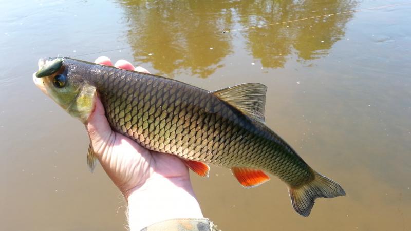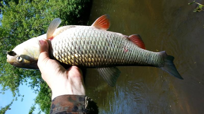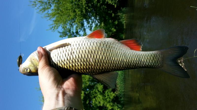 Jeszcze sprzed wysokiej wody na Wiśle. Dzisiaj podczas testów kijka jeden skubaniec się uwiesił +-40cm na Rapalkę Original 5cm. Podczas pozowania do zdjęcia strzelił mnie ogonem po twarzy i sam sobie wrócił do wody :P . Rozbawił tym bardzo parę siedząca na bulwarze :lol: