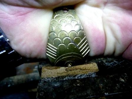 WOBLER-W1 Opublikowano 30 Czerwca 2008 Autor Zgłoś Udostępnij Opublikowano 30 Czerwca 2008 Teraz wykonujemy wygięcie z przeciwnej strony blaszki. Tak jak widać na zdjęciu wkręcamy blaszkę w imadło . Widać przekładkę z klocka drewnianego , który jest lekko zaokrąglony. Ma to na celu ochronę naszej blaszki przed zarysowaniem i ostrym przełamaniem . Ciągniemy do siebie ale nie za mocno . Prawda ,że łatwe ? Wykonanie takiej blaszki zajmuje mi 15 minut. Pozdrawiam , Paweł Brzuskiewicz . Cytuj Odnośnik do komentarza Udostępnij na innych stronach Więcej opcji udostępniania...