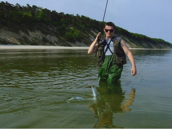 mifek Opublikowano 19 Maja 2008 Zgłoś Udostępnij Opublikowano 19 Maja 2008 ponieważ Szpiegu i jajakub prosili mnie o zamieszczeine ich króciutkiej relacyjki robie to natentychmiast.... oto ona: Ktoś kiedyś powiedział ze nieplanowane wychodzi najlepiej i ta sytuacja jest tego świetnym przykładem. Łowienie w morzu chodziło mi po głowie jakieś ładne parę lat. Zaczytany w artykułach w gazetach, na niemieckich portalach czy forach internetowych coraz bardziej mnie to brało, aby w końcu kiedyś spróbować. W sumie wyjazd był nieplanowany, tak jakoś wyszło, że Paweł (Jajakub) miał do mnie po drodze wracając do Lublina z Wrocławia . Tak w sumie to Ja wszędzie mam po drodze. Najpierw po drodze do Wrocławia był Połaniec i Robert, potem Z Wrocławia do Lublina Górzyca i Szczecin ze Szpiegiem i Miśkiem, a i okolice Międzyzdrojów z Bałtykiem jakoś tak na planie podróży się zaplątały.(Jajakub) Wstępnie rozmawialiśmy o Odrzańskich boleniach, ewentualnie jakiś innych rybach, no i pewnie by tak było gdyby nie post Daniela Xroda w wątku BELONY 2008. W głowie zaczął się rodzic szalony pomysł wyjazdu nad morze, belony to może nie bolenie, ale łowienie podobne, czyli szybko pod wierzchem rzucanie daleko albo bardzo daleko no i brodzenie, co ponoć u Pawła jest podstawą skutecznego łowienia boleni. Zaczęło robić się gorąco za liniach telefonicznych Górzyca , Lublin, Szczecin ciągłe dopytywania czy ryba jest pod brzegiem czy pogoda jest ok czy coś złowimy i czy ma sens. Jak to zawsze bywa wszystko obróciło się przeciwko nam. Daniel praktycznie codziennie miał informacje na bieżąco znad wybrzeża i ryb nie było, a do tego na weekend zapowiadane było przejście, niżu który pogrzebałby nasze szanse na jakiekolwiek ryby do zera. Ale suma summarum jednak postanowiliśmy ze jedziemy wszak, kto nie ryzykuje ten nie wygrywa. Z mojej wioski wyjechaliśmy już w piątek wieczór dzięki gościnie Mifka mogliśmy pospać aż dwie godziny (długie polaków rozmowy oczywiście o rybach) i mogliśmy jechać nad morze. Pogoda z rana oczywiście nie zapowiadała nic konkretnego w nocy lało, rano mgła i chmury jednak po przejechaniu polowy drogi chmurki zaczęły znikać i zaczęło wychodzić słońce, które zdecydowanie poprawiło nasze samopoczucie i dawało nadzieje na belony. Nad Bałtykiem byliśmy około godziny 6 rano, szybkie przebranie wskoczenie w spodniobuty i lecimy nad wodę. Na poniższym zdjęciu znajduję się kosmita nr 1Przynajmniej miałem takie wrażenie że nieliczni spacerowicze po plaży za takich nas uważali. . Z wędkarskim pozdrowieniem Grzegorz Szpiegu Dereń Paweł Jajakub Jakubowski Tekst, foto j.w Cytuj Odnośnik do komentarza Udostępnij na innych stronach Więcej opcji udostępniania...
