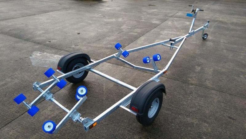 Jak sie przyjzycie na moja przyczepe to ona na koncu ramy ma os obrotu platformy z rolkami na ktore wjezdza lodka - calosc sie kolysze w zgledem przyczepy (tylko 2 przedie podwojne rolki niebieskie sa na stale zamocowane do przyczepy - 2 tylne podwojne zestawy rolek  kolysza sie wzgledem reszty przyczepy i musze im ten ruch zapewniec - dzieki temu moge wodowac i wciagac lodke niemal " z trawnika".  myslalem na tej koncowce ramy pomiedzy kolami a kolyska zamocowac jockey wheel, ale boje sie, ze korbkami porysuje lodke przy wciaganiu/spuszczaniu.