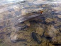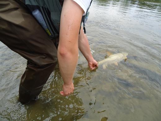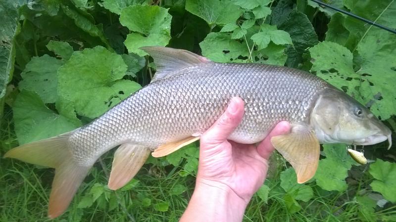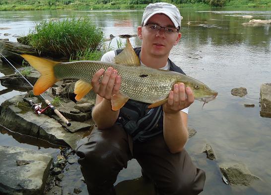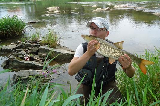 Wczoraj udało się wreszcie zrealizować długo planowaną wyprawę nad San w poszukiwaniu brzany. Długotrwałe przeczesywanie woblerem kolejnych potencjalnych "rynienek" przyniosło w końcu potężne branie i wspaniały długi odjazd. Rybka jak na brzanę przystało postanowiła przetestować moje nerwy i wytrzymałość zestawu, jednak udało się ją szczęśliwie umieścić w podbieraku. ;) a potem była już tylko wielka radość z nowego PB.