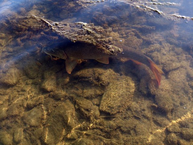 Wszystkie brzany łowię w Sanie, na zdjęciu dno to nie glina tylko roślinność która już obumiera :) no i może trochę już wygląda jak glina :)
