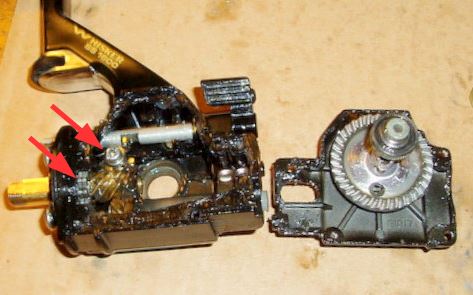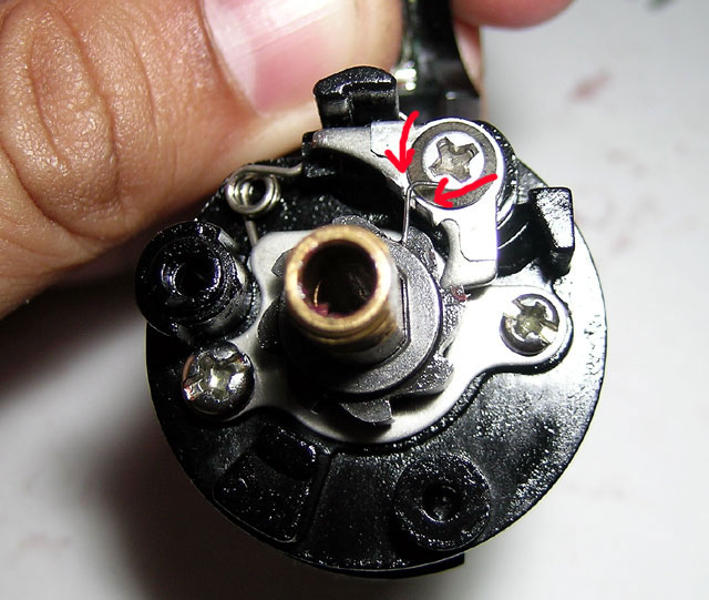 coma Opublikowano 17 Lipca 2014 Zgłoś Udostępnij Opublikowano 17 Lipca 2014 Kurde w moim modelu (1600) inaczej wygląda mechanizm blokady. Pozwoliłem sobie pożyczyć fotkę z internetu bo siedzę obecnie w pracy: Pierwsza czerwona strzałka pokazuje gdzie przykręcona jest blaszka blokady a druga zębatki po których ta blaszka "skacze" przy włączonej blokadzie. To właśnie to "skakanie" jest powodem dźwięku (terkotania), o który mi chodziło. Postaram się zrobić foty a może i nagram filmik jak wrócę do domu. Bardzo możliwe, że źle złożyłem ten mechanizm tylko nie mogę znaleźć ani schematu Daiwy SS Tournament Whisker 1600 (w sieci znalazłem tylko 1300, która jak się okazało ma trochę inną konstrukcję) ani żadnych fotek czy filmów pokazujących blokadę w tym młynku. Ogólnie z wyłączoną blokadą obrotów wstecznych jest cichutko zarówno przy kręceniu w przód jak i w tył.PS: luzy na korbce zniknęły jak ją mocniej dokręciłem... Zastanawia mnie tylko jeszcze po co jest to czarne gumowe kółeczko (nad strzałkami w powyższym zdjęciu)? Cytuj Odnośnik do komentarza Udostępnij na innych stronach Więcej opcji udostępniania...