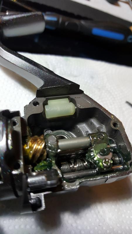 przemow Opublikowano 21 Lutego 2018 Zgłoś Udostępnij Opublikowano 21 Lutego 2018 Sorry za brak czasu ale mam teraz Sajgon i ogromny deficyt wolnego czasu. Tu pierwszy cukierek po sieradzkim królu podkładek , turek force , źle złożony a mianowicie tulejka dystansowa zamiast na tylnie lozysko była wciśnięta z przodu przez co cały kosz wodzika blokował się na niej w dolnym położeniu szpuli , dodatkowo łożyska szumią , chyba były wymyte w benzynie i nasmarowane czymś tam , obudowa wodzika pęknięta przez za mocne dokręcenie śruby , nakrętka rotora obciosana siekierą chyba no i oczywiście najlepsza metoda na problem czyli smaru pod korek chyba z towotnicy.Odliczamy do pojawienia się multikontowców :-)))) 2 Cytuj Odnośnik do komentarza Udostępnij na innych stronach Więcej opcji udostępniania...