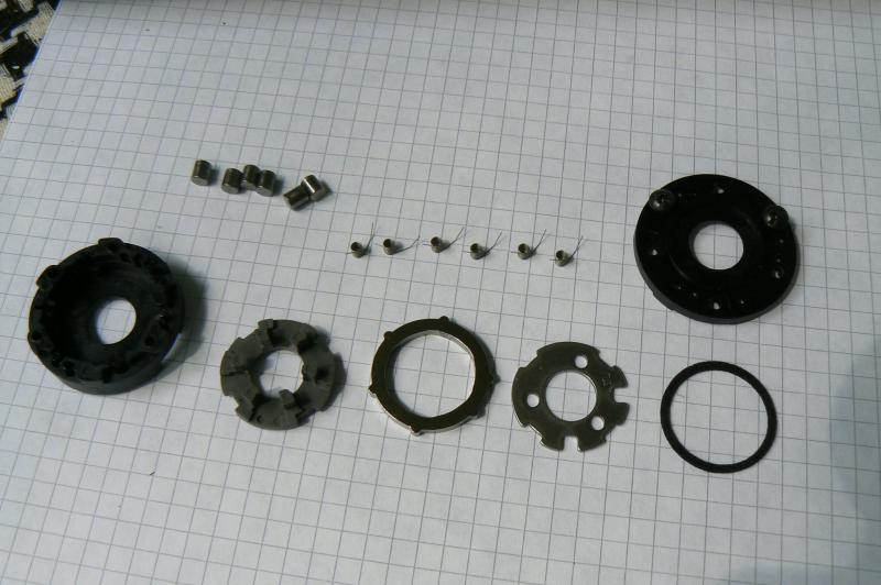 Catrol Opublikowano 19 Maja 2019 Zgłoś Udostępnij Opublikowano 19 Maja 2019 1. Czarną dolną połówkę posmaruj na dnie jakimś rzadkim smarem - daj trochę DG 62. Włóż tą blaszkę, zwróć uwagę na to żeby mogła się przesuwać lewo-prawo...przełącznik musi być w stanie nią ruszyć.3. Ustaw wałeczki na swoich miejscach, przyjrzyj się czy nie są eliptyczne. Jeśli są ustaw wszystkie identycznie względem środka gdzie pójdzie tulejka.4. Załóż sprężynki. Zdjęcie tytułowe filmiku który podrzucił Kolega Radek pokazuje jak one są zakładane. Bez pośpiechu, wszystkie sprężynki tak samo ustaw.5. Załóż ten metalowy pierścień o dziwnym kształcie. On wchodzi tylko w jeden sposób. A na pewno tylko w jednym położeniu będzie utrzymywał części na swoich miejscach i da możliwość przełączania blokady.6. Wpuść po kropelce oliwki między wąs sprężynki, a wałek.7. Połóż piankowy uszczelniacz na swoje miejsce. Możesz spróbować położyć go w pokrywce - powinna być faza na na niego w dole pokrywki. Jeśli wypada podklej go malutkimi kropkami gęstego smaru...3-4 takie kropeczki aby trzymał się obudowy.8. Skręć nie za mocno.9. Sprawdź czy oporówka się przełącza - na drugim zdjęciu pokazałeś gniazdo przełącznika w blaszce...wsadź tam śrubokręt lub pęsetę i spróbuj przełączyć. Jeśli przełącza, blaszka chodzi lewo-prawo i widać, że wszystkie wałeczki reagują na przełączanie załóż oporówkę na kołowrotek...i też nie przykręcaj zbyt mocno.Jak ściśniesz oporówkę na mocno do korpusu obudowy może dziwnie pracować.Jeśli obroty wsteczne włączają się i wyłączają, a oporówka szumi, grzechocze...po prostu przełowić kołowrotek. Może się ułożą. 1 Cytuj Odnośnik do komentarza Udostępnij na innych stronach Więcej opcji udostępniania...