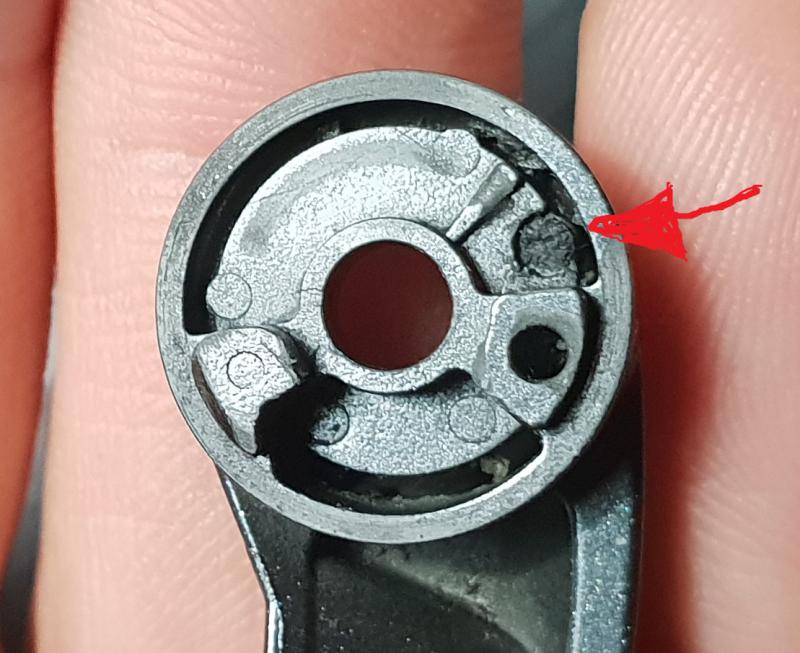 pachuc Opublikowano 28 Października 2020 Zgłoś Udostępnij Opublikowano 28 Października 2020 (edytowane) W kabłąku też delikatny luz musi być.Tam jest taka szparka 0,5mm aby prawidłowo działał.Musi leciutko zamykać się i otwierać.Śrubka ma gwint do pewnego momentu i na siłę jej nie wkręcisz jak poczujesz opór, nie dokręcaj na siłę. Spoko. Ale już za późno . Dobrze, że ukręciło się na części bez gwintu i dałem radę wykręcić pozostałości A czy ktoś mi podpowie czy ta część jest uszkodzona (nr 37).? bo na taką wygląda, jakby ułamana/wykruszona .. ( i może stąd był taki luz, który mi się nie podobał.. zamiast sprwdzić najpierw to niestety lekko dokręciłem..) . Niestety nie mogę znaleźć dobrego foto od wewnętrznej strony na internecie.. Edytowane 28 Października 2020 przez pachuc Cytuj Odnośnik do komentarza Udostępnij na innych stronach Więcej opcji udostępniania...
