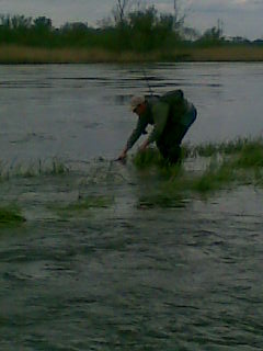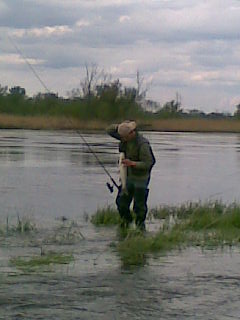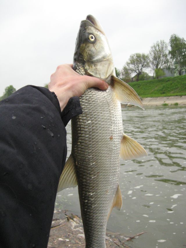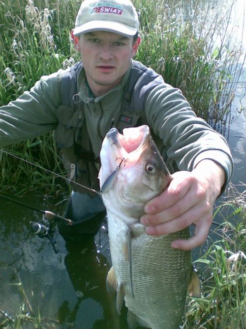 Mimo wysokiej, prawie powodziowej wody (drzewa plynely)mialem kilka bran. Jeden kolo 60 dal sie wyjac....