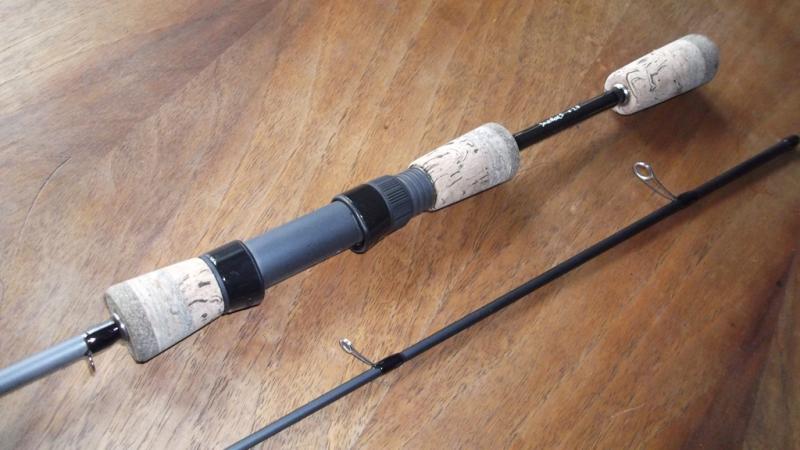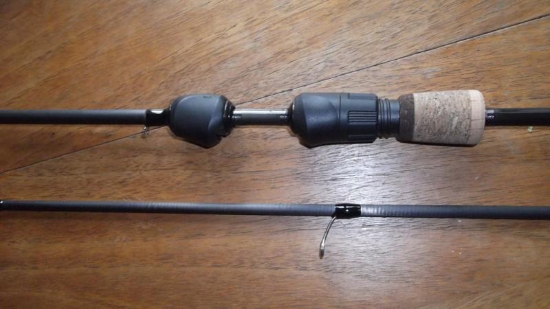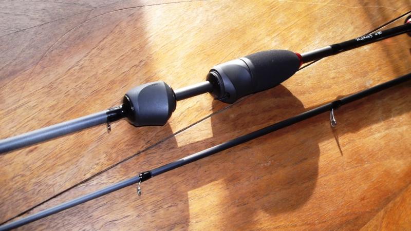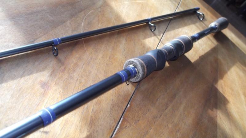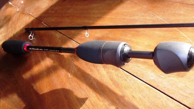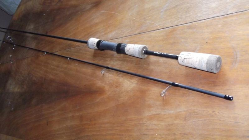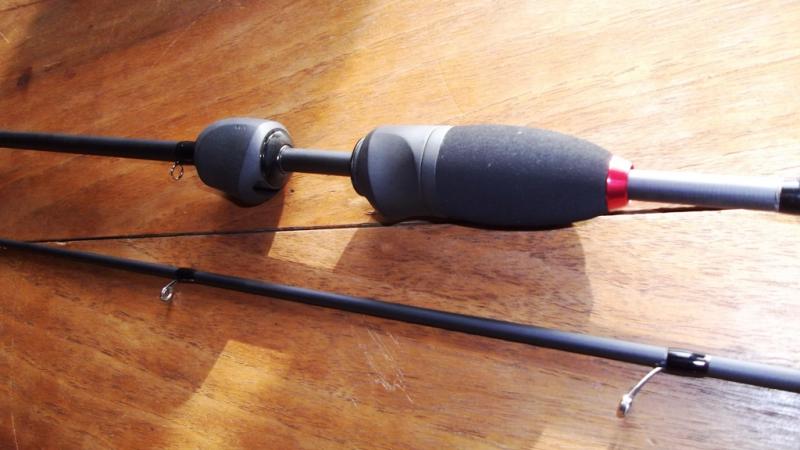 Hubertus Opublikowano 13 Kwietnia 2015 Autor Zgłoś Udostępnij Opublikowano 13 Kwietnia 2015 Sprawdzony blank MHX S871-2 długość 7'3" moc 2-6lb cw 1-6 grama. Realnie kijek ogarnia najmniejsze gumki na mormyszkach "wolframkach", nimfy, maleńkie blaszki, cykady oraz woblerki. Komfort kończy się przy 6 gramach plus gumka 2" raczej smukła. Ten konkretny egzemplarz uzbroiłem w przelotki PbMinima Hard od 16M do 3W na szczycie PB, uchwyt fuji SKSS 16, z nakręcanym reargripem, czarna pianka EVA, czerwone pierścienie z anodyzowanego aluminium, nić czarna. 5 Cytuj Odnośnik do komentarza Udostępnij na innych stronach Więcej opcji udostępniania...
