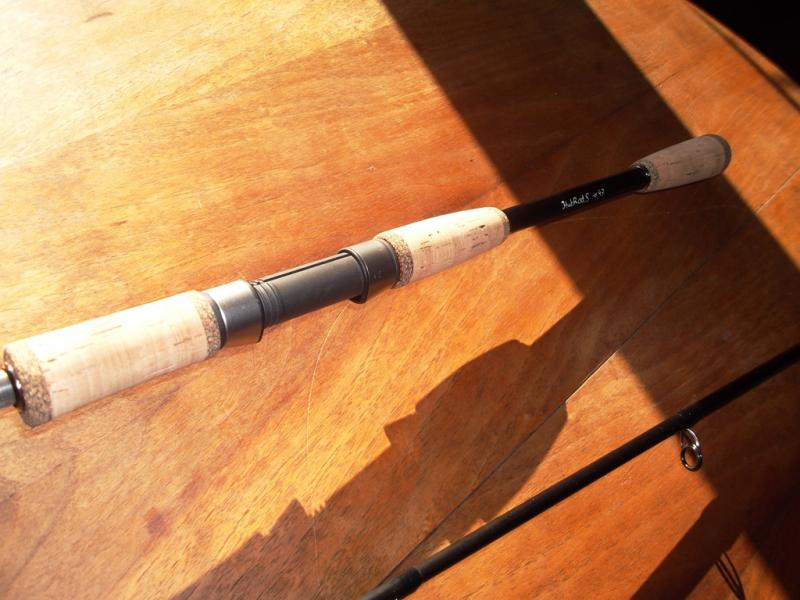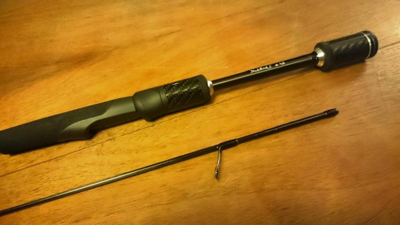 Hubertus Opublikowano 3 Sierpnia 2015 Autor Zgłoś Udostępnij Opublikowano 3 Sierpnia 2015 I czas na moje ostatnie wypocinyBlank Matagi TR69 Super Ajax długość 209 cm, 3-6 lb cw opisany 1-3 grama. Jest to delikatana szybka wklejka do łowienia micro przynętami, tip grubości 0,8 mm pozwala na skuteczne prowadzenie wabików odrobinę poniżej 1 grama, górą 3 gramy plus mały gumiaczek. Prawdopodobnie sam sobie sprawię taki kijek, ewentualnie Super Mebaru, kosiarka pod okonie.Blank postanowiłem ubrać w komplet Fuji Torizite od 16h do 3,5 KT, uchwyt Fuji VSS 16, nakręca reargip na KSKSS16-ASH, do tego pianka EVA, rurka węglowa, pierscionki srebrne, omotka czarna plus delikatne wstawki ze srebrnej nici. Całość komponentów zakupiona u Roberta z BRC 13 Cytuj Odnośnik do komentarza Udostępnij na innych stronach Więcej opcji udostępniania...