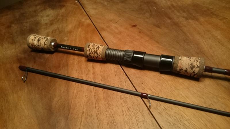 Hubertus Opublikowano 28 Października 2015 Autor Zgłoś Udostępnij Opublikowano 28 Października 2015 Kolejne wcielenie sprawdzonego blanku MHX S871-2 długość 7'3" moc 2-6lb cw 1-6 grama. Mój ulubiony okoniowy kijek, który realnie ogarnia najmniejsze gumki , maleńkie blaszki, cykady oraz woblerki. Komfort kończy się przy 6 gramach plus gumka 2" raczej smukła. Ten konkretny egzemplarz uzbroiłem w przelotki PbMinima Hard od 16M do 3W na szczycie PbMicro. Rękojeść dzielona, korek Copano jasny, pierścionki FAWC, fuji DPS Black 18 ze skróconym gwintem, nici Garnet. Komponenty zakupione w BestRodsCenter. 3 Cytuj Odnośnik do komentarza Udostępnij na innych stronach Więcej opcji udostępniania...