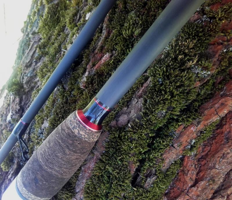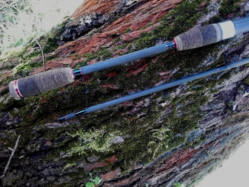 Wędki zbrojone w dzielone rękojeści z korka Burnt oraz Tiger, do tego odpowiednio Fuji KSKSS oraz Fuji DPS. Przelotki to odpowiednio Fuji SIC KrH oraz ALPS SIC S6 Y-L. Pierścionki srebro i złoto, podobnie tipet w omotkach.