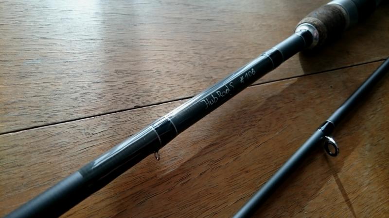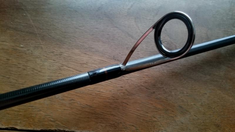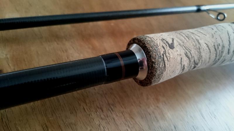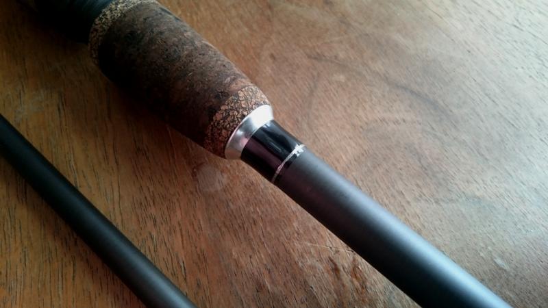 Ten konkretny egzemplarz ubrany został w rękojeść z jasnego Tigera, uchwyt FDSN z terkotką, przelotki Fuji SIC KrH od 25 do 5 na szczycie, wykończenia srebrne, grip nakręcany, omotka czarna z pomarańczowym tipetem.