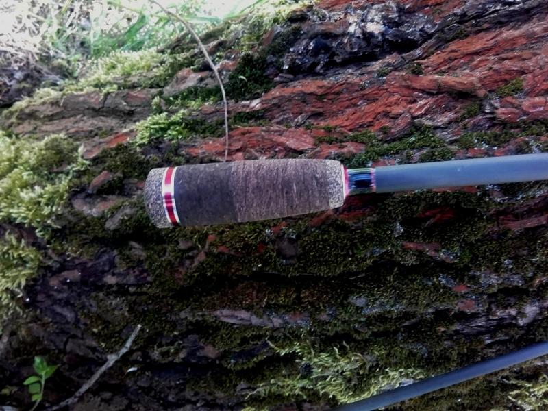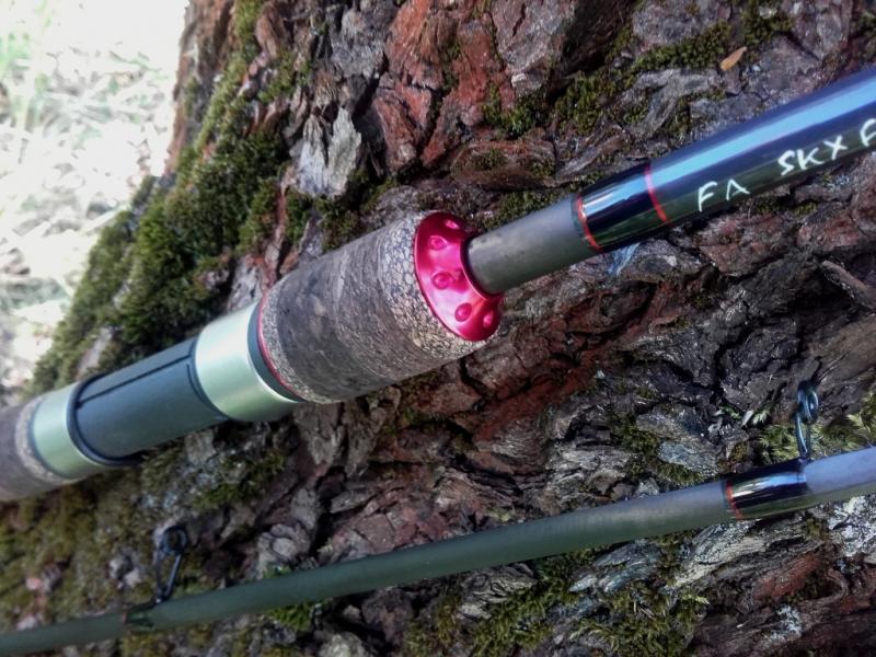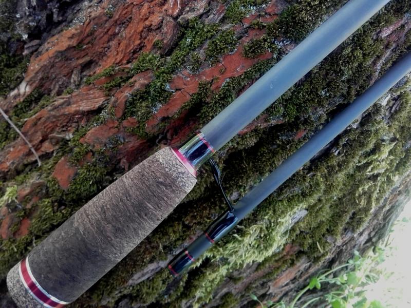 Wędzisko zbudowane zostało na komponentach Fuji, uchwyt KSKSS, przelotki Alconite KrH plus SIC na szczycie, rękojeść dzielona z ciemnego tigera, omotka czarna z czerwonymi akcentami.