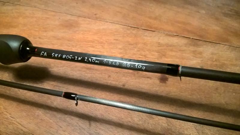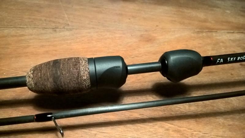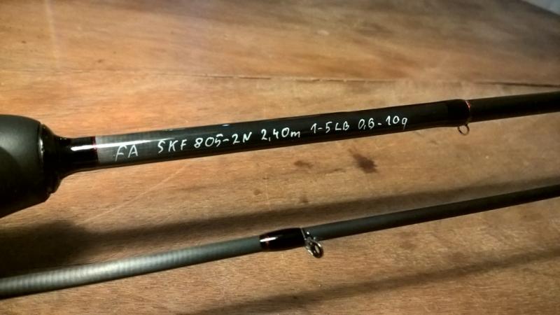 Wędka zbudowana na blanku rodem z Krakowa, czyli FishingArt z nowej serii na 2016 czyli Kraag SKF 805-2N. Blanki z tej serii konstruowane były z myślą o wędkarzach preferujących przynęty gumowe, czyli czuła delikatna szczytówka i ugięcie przesunięte do szczytu. Ten konkretny egzemplarz ma 2,4 metra długości, moc 5 lb oraz cw 0,6-10 g, blank opisany poprawnie.