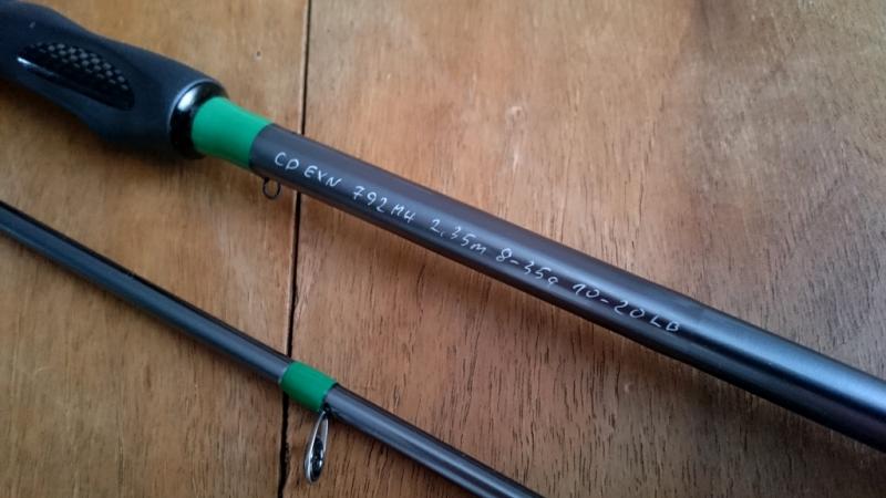 Wędka zbudowana na blanku CD EXN 792MH długość 2,35m, cw. 8-35g, linka 10-20lb, mocno zbieżny blank, z jednej stron szczyt 1,6 mm a w dolniku rura ponad 14mm. Blank opisany poprawnie, gumy 3" w przedziale 10-30 g w pełnym komforcie, delikatny szczyt zasygnalizuje pracę przynęty a mocny dolnik pozwoli na mocne i pewne zacięcie.