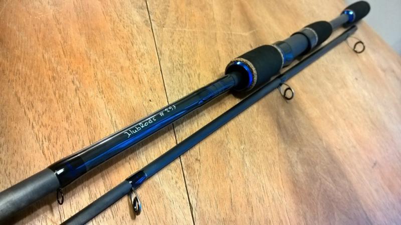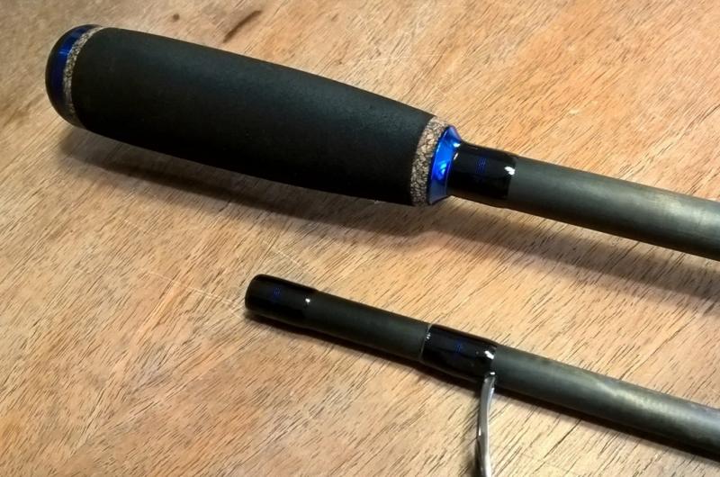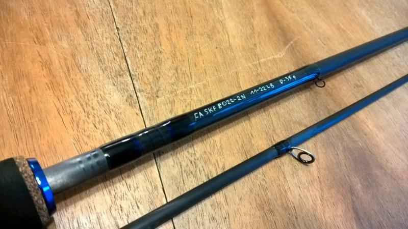 Prezentowany egzemplarz uzbrojony został w przelotki SeaGuide KL, uchwyt Fuji DPS z nakręcanym gripem, rekojeść dzielona, pianka EVA Matagi ze wstawkami korkogumy, całość dopełnia niebieska biżuteria oraz czarna omotka z niebieskim tipetem.