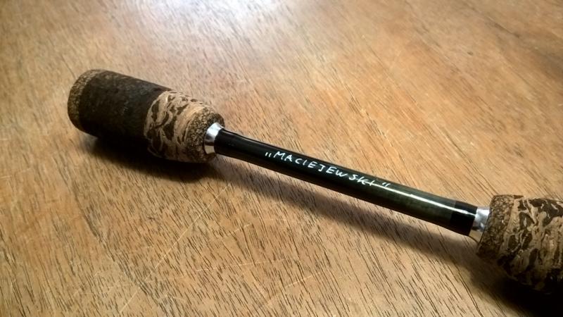 Ten konkretny egzemplarz lakierowany na kolor nut Brown, do tego klasyczna rękojeść z jasnego korka, uchwyt Fuji DPS Black 17, przelotki Alps plus Fuji SIC na szczycie, omotka Fuji w kolorze brown.