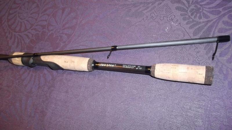 Hubertus Opublikowano 9 Października 2014 Autor Zgłoś Udostępnij Opublikowano 9 Października 2014 Dellikatny kijek zbudowany na muchowym blanku w klasie 3 z wegla IM6, dodatkowo oskrobany z lakieru i oszlifowany. Dlugosc 6'8" moc 1-4lb cw 1-6 grama, ugiecie pelne, akcja mod-fast ze wskazaniem na moderate. Uzbrojony w uchwyt PacBay ze skroconym gwintem, oraz budzetowe przelotki ATC, rekojesc z korka plus wstawki z korkogumy. Idealny pod najlzejsze przynety, blaszki, wobki oraz microjigi prowadzone na leniwca. 3 Cytuj Odnośnik do komentarza Udostępnij na innych stronach Więcej opcji udostępniania...