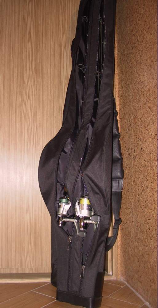 Przyuwazylem jakis czas temu praktyczny pokrowiec na wedki. Mozna w niego zmiescic okolo 4y zestawy wedek wraz z niezbyt gabarytowymi kolowrotkami (jezeli solidne maszyny to wejdzie odpowiednio mniej)