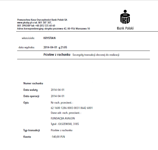 Ostatnią wiadomość dostałem 9 kwietnia i brzmiała ona mniej więcej tak "Jutro wysyłam bo wszystkie potwierdzenia i kasę dostałem i przelałem pieniążki pozdr" Cieszę się,że ja właśnie wysłałem pieniądze bezpośrednio na konto fundacji,wiem jednak,że nie wszyscy tak zrobili i aż boję się myśleć co się stało z tymi środkami.