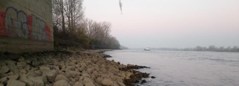 Opaska tarasowa jak ja nazywam, bo po spadzie jest zdudowany blacik/taras i kolejny spad. Pierwszy spad jest juz wysoko na woda, tarasik zdemolowany latami pracy nurtu tez jest nad woda i do oblawiania jest ostatni spad az do dna. Czasem przy wysokiej wodzie sandacze zeruja wlasnie na tym tarasie. Jednakze uszczerbki w tarasie spowodowaly powymywanie sporych dolow, ktore teraz granicza z plytka woda. Ot takie gorki i dolki. Taktyka na takie lowisko jest prosta. Przed widocznym na zdjeciach mostem jest szereg glowek na zewnetrzym zakrecie. Wyprawe zaczalem ok 13 zaczynajac od oblawiania glowek od polowy szeregu.