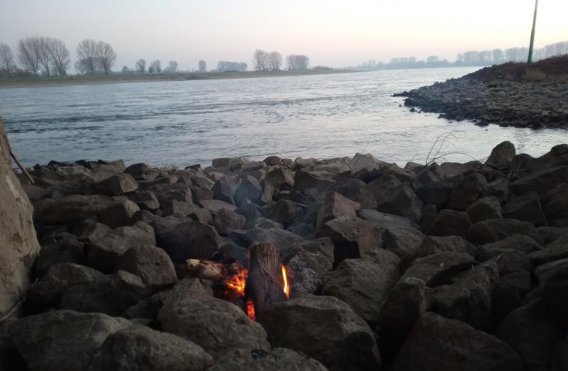 Przed zmierzchem rozpalilem ognisko pod filarem od strony glowek (tempertrura 2°C) Ogniska w miejscu gdzie wieczorem lowie,- jak dla mnie powinno byc typu "dakota" by plomien nie byl widoczny dla ryb i z dala od wody. W kamieniach taka "dakote" jest latwo zrobic wycigajac jakis duzy kamien i tylko dolot od strony wiatru  powinien byc wyrazny  na pocztku rozpalki - potem ma sie tylko zazyc i lapy ogrzewac. Jak blisko mamy jakis wiekszy kamien to i dupsko mozna od bidy ogrzac siedzac na nim ;) Jak ognicho juz sie tylko zazy to pora je zabudowac i zmykac na opaske, na powrocie mozna sie bedzie jeszcze ogrzac i oblowic wsteczniak prze ostatnia glowka. Pisze o tym ognisku bo przynajmniej dla mnie  powala ono latwiej zniesc zimo wiatru smagajacego glowe i rece (nienawidze czapek i rekawiczek) i doczekac w dobrej psychicznej kondycji do zmroku i potencjalnych bran. Nie umiem juz dlugo lowic w takich warunkach 6-7 godzin to max na jakie stac starszego pana. Wczoraj juz o 19 peklem...