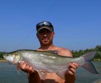 W skwarze niemiłosiernym po trzech dniach stania po pachy w rzece miałem upragniony kontakt z Barwenami. Jedna spadła, wieksza 70cm doholowałem do konca. Na okrase dołowiłem 48cm jazia.