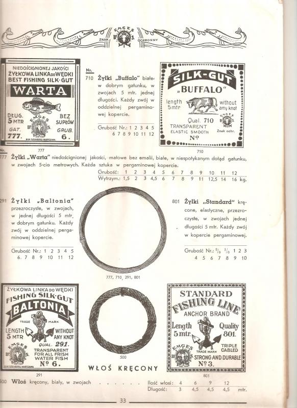 drag Opublikowano 26 Sierpnia 2014 Zgłoś Udostępnij Opublikowano 26 Sierpnia 2014 Firma reklamuje się jako "pierwsza w polsce wytwórnia i skład przyborów do rybołóstwa". Ponieważ przygotowujemy książkę z działem poświęconym historii wędkarstwa na naszym terenie, spotkałem się ze starszym człowiekiem, którego ojciec prowadził przed wojną sklep wędkarski. Z jego relacji wynika iż większość produkcji była polska. Jak słusznie zauważyłeś przy woderach jest napisane, że są angielskie.Wszystkie wędziska były produkowane w Polsce, z surowego bambusa, trzciny a nawet metalu. Na pewno nie wszystkie rzeczy które są w katalogu, były produkowane przez Emges- musiała by to być jakaś potężna korporacja, ale na kołowrotkach widać (w katalogu, bo na skanie już nie) mały emblemat EMGESDzięki za odpowiedż,bardzo ciekawy temat podałeś.Próbowałem szukać jakiejś informacji w necie na temat firmy,nic nie znalazłem.Choć maniakiem sprzętowym raczej nie jestem,wątek bardzo fajny i mam nadzieję że się rozwinie.Jakby nie patrzeć,kawałek historii w dziedzinie nas interesującej.Pozdrawiam . 1 Cytuj Odnośnik do komentarza Udostępnij na innych stronach Więcej opcji udostępniania...