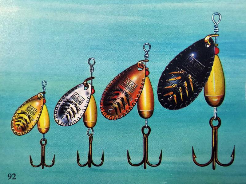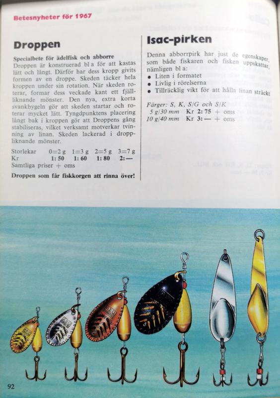 Tak to szacuję, bo na załączonej stronie katalogu z lat 60-tych, gdzie autor omawia błystki Reflex widać, że są już i Droppeny i są ich różne wersje. Nigdzie też nie znalazłem fanklubu tej przynęty, w przeciwieństwie do obrotówek Reflex.