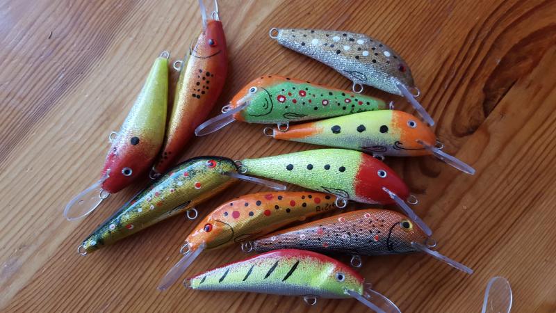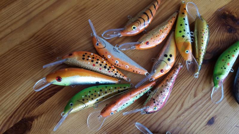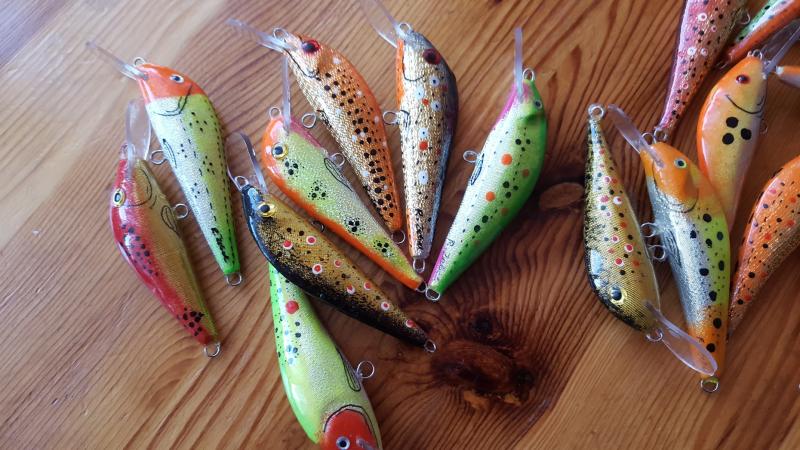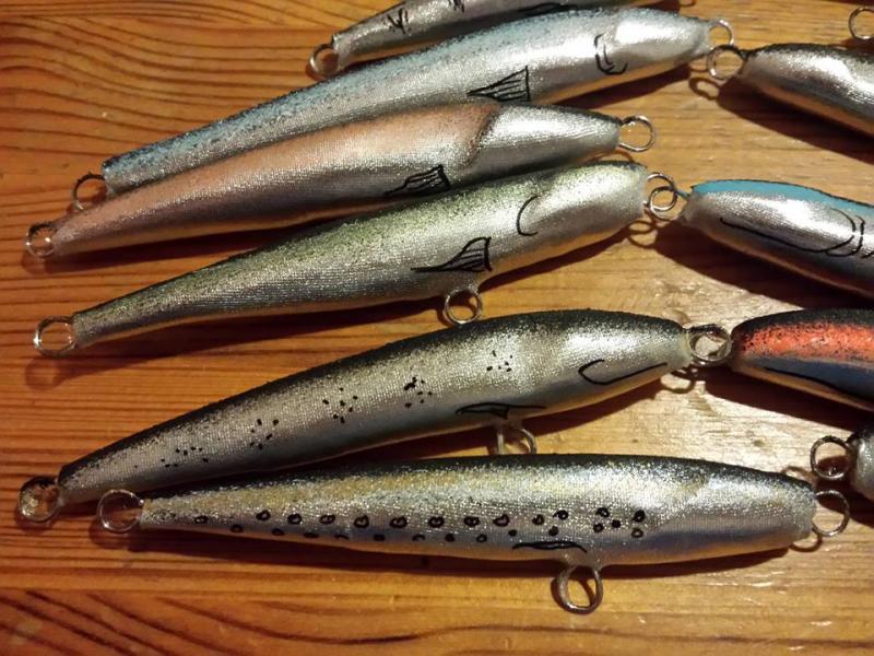 Witam po przerwie spowodowanej praca i rybami :) moje ostatnie dziela to sandaczowki 7,9,11 cm standardowa praca glebokosc schodzenia do metra, i kilka boleniowek 9cm w koncowej fazie razem z kotwicami beda mialy gdzies 12 gr. Praca podczas powolnego zwijania linki lub w samym nurcie bardzo widocznie migota natomiast podczas szybkiego zwijania migota szybciej, opad lusterkuje :) cos sie dzieje ;) pozdrawiam do nastepnego :)