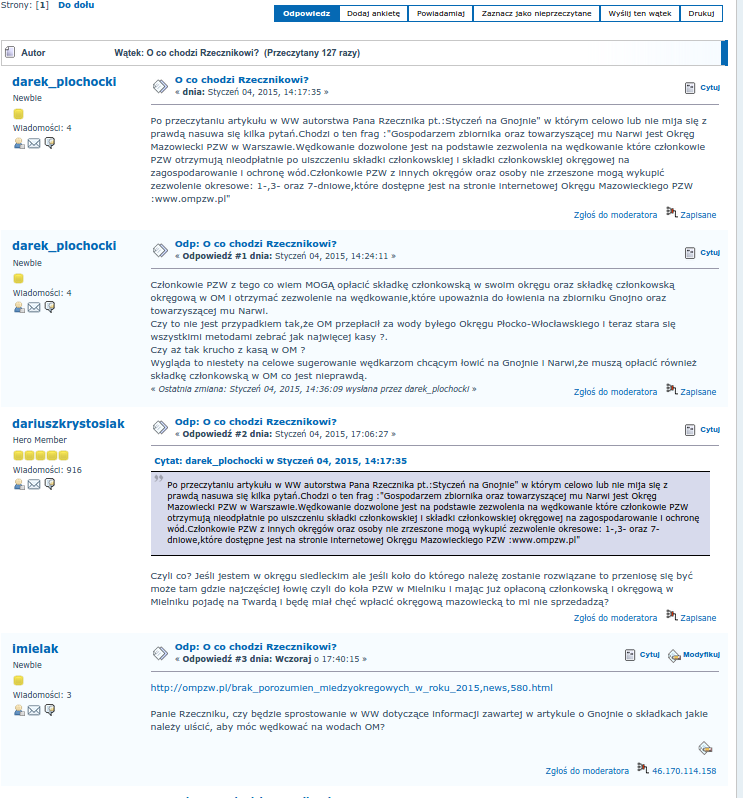malcz Opublikowano 19 Stycznia 2015 Zgłoś Udostępnij Opublikowano 19 Stycznia 2015 (edytowane) Panowie, gdzieś na wcześniejszych stronach zadawałem już podobne pytanie, ale dyskusja była na tyle gorąca że chyba umknęło i nikt się nie wypowiedział...Czy w kole do którego się należy(OM) można wykupić znaczek całoroczny na Ciechanów? Czy "u siebie" tylko OM a po ten Ciechanowski trzeba jechać i ogarniać gdzieś w terenie? Jak bym chciał pełną na mazowsze z wodami górskimi i bez trollingu + Ciechanów, to wychodzi: Członkowska OM - 75złPełna OM(bez trolla) - 148zł+Ciechanów cały rok (wody nizinne) - 124zł Razem: 347zł? Edytowane 19 Stycznia 2015 przez malcz Cytuj Odnośnik do komentarza Udostępnij na innych stronach Więcej opcji udostępniania...