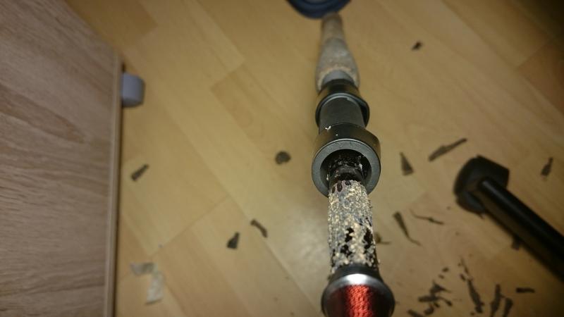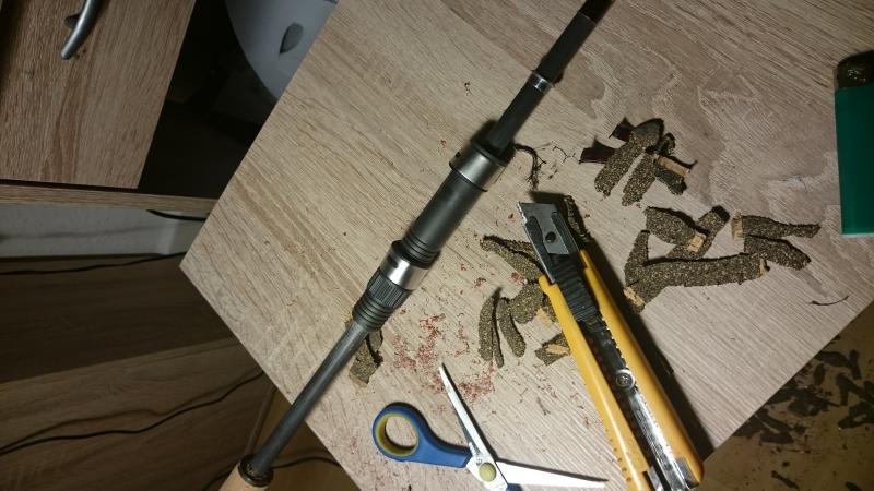 Przed montażem uchwytu pójdzie też nowy korek, z zachowaniem oryginalnej tulejki węglowej Shimano w dole rękojeści.