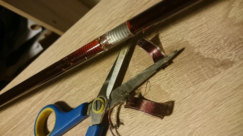 Uzywalem nozyczek i od czasu do czasu nozyka do tapet aby usunac stary lakier, nie chcialem podgrzewac blanku raz jeszcze , zrobilem tak tylko raz aby zobaczyc czy da sie to zrobic bez sladu. Ostra strona nozyczek wykonywalem ruchy od siebie, nie wiem czy to ma znaczenie, ale gdy skrobalem do siebie czulem, ze pod nieodpowiednim katem i z zbyt duza sila moglbym uszkodzic blank.