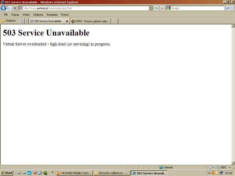 0 Jeziorm 1 Opublikowano 15 Stycznia 2010 Zgłoś Udostępnij Opublikowano 15 Stycznia 2010 503 Service UnavailableVirtual Server overloaded - high load (or servicing) in progress. Notorycznie od wczoraj. Tylko u mnie, czy też inni mają ten problem? mam to samo.... Cytuj Odnośnik do komentarza Udostępnij na innych stronach Więcej opcji udostępniania...