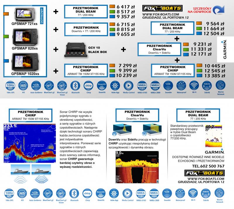 Faktycznie wyższe modele Garmina są sprzedawane bez przetworników ...i Lowranca zresztą też. Gramin i tak wychodzi trochę taniej i ma dużo lepsze menu i parametry...i 10Hz GPS. Jak Garmin wszedł na p