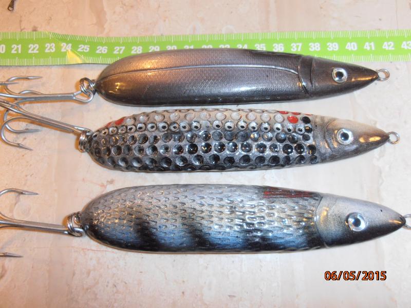 godski Opublikowano 7 Maja 2015 Zgłoś Udostępnij Opublikowano 7 Maja 2015 Drewniane wahadełka. Wyglądają jak trójwymiarowe. Piekne i oryginalne. Mam też takie mniejsze 12 cm i 35 g.Idealne na szkiery będą. Waga uzbrojonych to 45 gramów. Uzbrojone w kotwice morskie VMC 7/0 z usuniętymi zadziorami.Trochę grubo ale mniejsze miałem 4/0 i były zdecydowanie za małe. 1 Cytuj Odnośnik do komentarza Udostępnij na innych stronach Więcej opcji udostępniania...