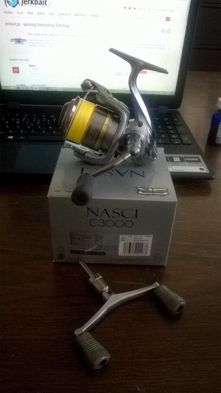 Nowy nabytek Nasci C3000 rocznik 2011 JDM Malezja nówka znaleziony w necie w cenie Exage.Na szybko wymieniony knob z T na zwykły (tulejki zamienione na łożyska),oraz dopasowana stara korbka DH (zmieniony trzpień z tuleją na krótszy,knoby po regeneracji i kasacji luzów).
