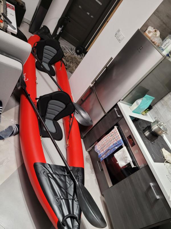 godski Opublikowano 7 Stycznia 2023 Zgłoś Udostępnij Opublikowano 7 Stycznia 2023 Właśnie jestem świeżo po wodowaniu... rąk nie czuje ale 4 km na wodzie jak na takiego amatora z brzuszkiem jak ja to niezły wyczyn Pierwsze wrażenie? Jako sprzęt do rekreacji świetny! Bardzo stabilny, lekki, bezpieczny, zwrotny, siedzisko dobrze wspiera plecy podczas wiosłowania, sporo miejsca "po długości". kaj1.png kaj2.png Poniżesz minusy czysto pod kątem wędkarskim (pamiętając, że to nie jest kajak wędkarski )- niska pozycja siedziska, będę musiał zrobić jakiś poddupnik żeby podnieść 4 litery o jakieś 30-40 cm, pływałem co prawda bez wędki ale już wiem, że w moim wypadku takie podwyższenie będzie konieczne (tylko do wędkowania). Ważna uwaga - o łowieniu na stojąco można zapomnieć... próbowałem wstać, nie polecam.- przewożenie wędki: musze wymyślić jakieś klipsy, opaski bo na ten moment miałbym obawy jeśli chodzi o bezpieczne przewożenia kija (stojak w oparciu w tej wersji siedziska odpada moim zdaniem) Jeszcze jedna rzecz - polecam jakiegoś drybaga żeby mieć wszystkie graty pod ręką. W kajaku miejsca jest niby dużo ale jest długi i wąski, wiec sięganie po rzeczy gdzieś na samym dziobie/rufie nie jest łatwe, po za tym przy wiosłowaniu "lewa/prawa" jest spore ryzyko zamoczenia siebie i sprzętu (np. komórki) W każdym razie kajak u mnie zostaje, rekreacyjnie będzie używany często i gęsto, wędkarsko przetestuje pewnie dopiero w maju.Niezła recenzja. Jakie ciśnienie w balonach i podłodze dałeś? W instrukcji jest 3/10 ale na zaworze podłogi jest 8. Musze do nich zadzwonić. Cytuj Odnośnik do komentarza Udostępnij na innych stronach Więcej opcji udostępniania...