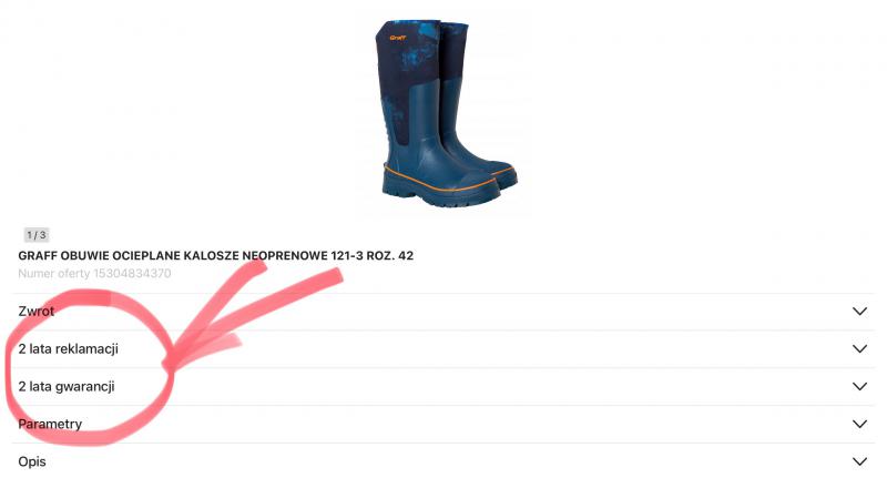 Darek_W Opublikowano 16 Listopada 2024 Zgłoś Udostępnij Opublikowano 16 Listopada 2024 Graff ma na swojej stronie te gumiaki też po 199zł, ale......... i wklejam info z ich strony. Może dla niektórych mało ważne, ale jednak. Ze względu na widoczne ślady klejenia, produkt sprzedawany jako II gatunek.Wada nie wpływa na właściwości użytkowe obuwia oraz nie podlega reklamacji.W warunkach sprzedaży gdzie kupiłem jest pełna gwarancja Cytuj Odnośnik do komentarza Udostępnij na innych stronach Więcej opcji udostępniania...