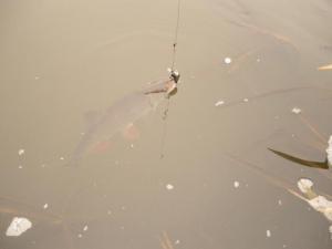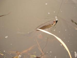Woda dziś już była dużo niższa niż wczoraj i nabrała mojego ulubionego koloru - zieleni. Pierwszy dzisiejszy kleń okazał się zarazem największym - pozostałe już nieco mniejsze.