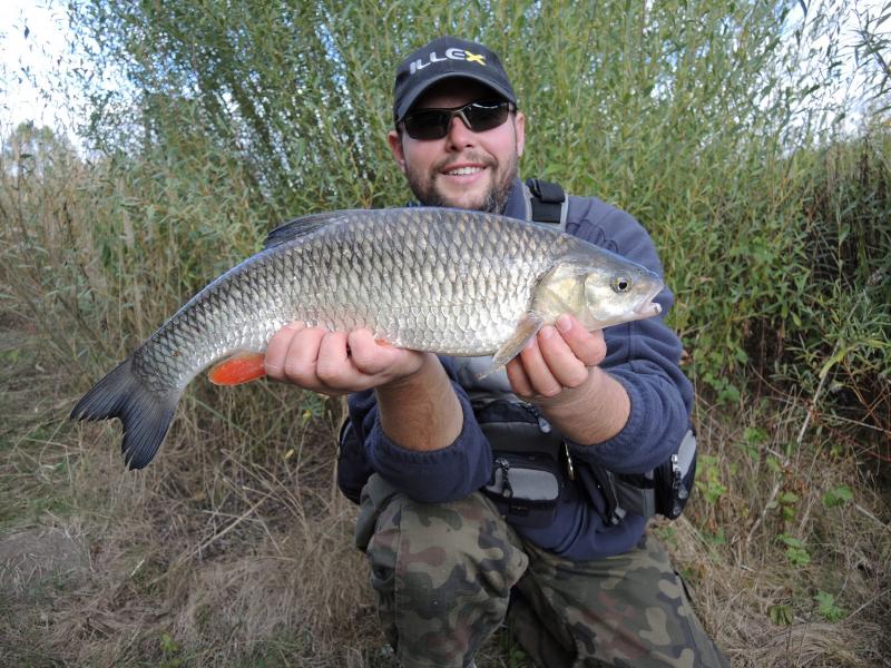 tadekb Opublikowano 30 Września 2015 Zgłoś Udostępnij Opublikowano 30 Września 2015 (edytowane) A ja sobie musiałem przerwę w sandaczowaniu zrobić. Jakoś przez ostatnie kilka wypadów szału nie było - albo na zero, albo 1-2 ryby do max 65. Pogoda też bez sensu. Wysokie ciśnienie + wchodnie wiaterki = padaka. Przynajmniej na mojej Wiśle i jak chodzi o sandacze i bolenie. No to wyskoczyłem na jazie - te widać prawie zawsze i niektóre naprawdę spore. Może przy okazji jakieś klenie. Niestety warunki były tragiczne, bo przy opasce, oprócz dość silnego zimnego wiatru w twarz, zastałem płynący ok. 3m szerokości pas delikatnego bajzlu. Niby nic strasznego - jakieś listki, trawki itp, ale przy delikatnym spławianiu malutkiego woblerka była męka. Trzeba było podchodzić do ryb na odległość rzutu i celowanie w czyste dziury na wodzie. Jazie na szczęście dość ochoczo pokazywały się przy kamieniach i moje podchody im nie przeszkadzały. Wiatr i tak wszelkim zielskiem na skarpie falował, więc było łatwiej. Coś tam brało. Najwiąksze jazie się nie dały, choć było je widać, ale dwa po 40+ wyjechały na chwilę z wody. Na koniec przed zmianą miejsca zakładałem trochę większego woblerka i starałem się obrzucać też głębsze rejony podstawy kamieni z nadzieją na klenia. Po dwóch okoniach trafił się klenio. Naprawdę grubaśne 50 z małym plusikiem: Wklejka Mikado Lexus 2,6m do 12g, żyłka Stroft 0,14, jazie na 14mm wobki, klenio na pixela A.L. Edytowane 30 Września 2015 przez tadekb 34 Cytuj Odnośnik do komentarza Udostępnij na innych stronach Więcej opcji udostępniania...