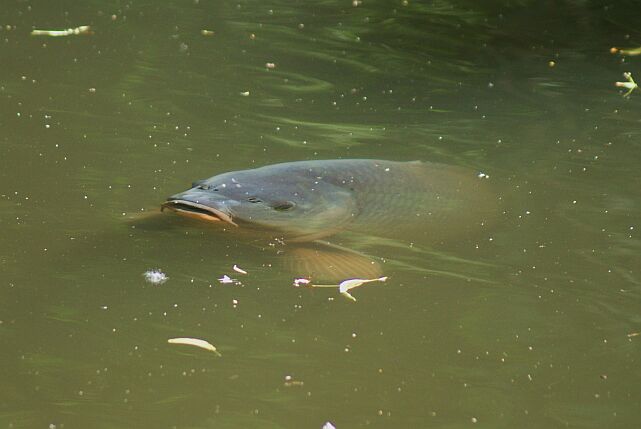 Dopiero gdy zobaczyłem rybę i to co ona robi, zwróciłem uwagę na to że wszystkie gałązki oczywiście do pewnego odcinka są bez listków (na fotce niestety tego dobrze nie widać).