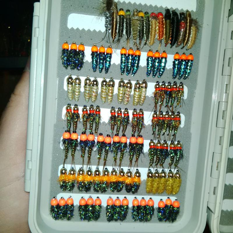 Cos tam sie dzieje w burackim warsztacie. Kilka prawie gotowych much na szczupaki ( na glowki z oczami czekaja), okolo 20-25 cm, z resztek materialow, za tydzien bedzie juz jazda na calego jak podochodza mi zamowione materialy, te na hakach Mustad 4/0, reszta bedzie na tubach :)