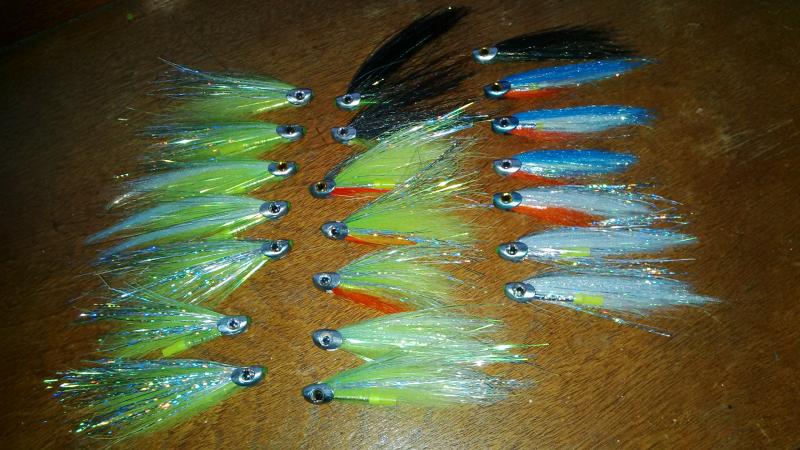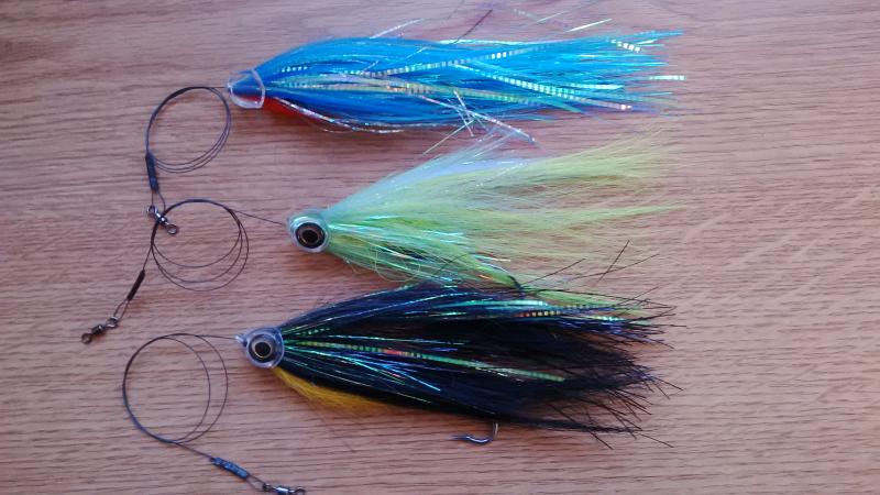 Te sa dla ciebie, niestety oczka zamowilem w Orvisie bo gdzie indziej nie mieli a ci idioci wyslali mi z US i tak trzeci tydzien jestem w d...e. Wielkosc okolo 15-17 cm, lataja super, wszystkie z gotowym juz przyponem tytanowym 30 lbs by tylko zapiac/zawiazac i rzucac. Dojdzie jeszcze dlugawa ale cienka imitacja wegorza i cos ekstra, ciut inaczej zrobione ale dalej leciutkie i latwe w operowaniu. W tych muchach masz praktycznie same syntetyki oprocz bucktaila na podtrzymanie do gory, swietny jest DNA Holo Fiber, mieni sie na wszelkie mozliwe sposoby :)