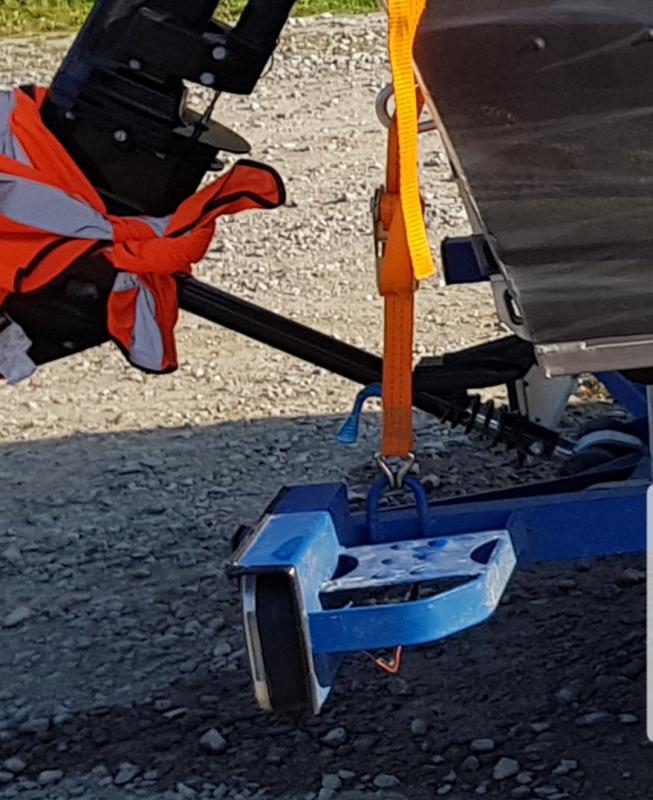 Trzeba wykombinować mocowanie które będzie trzymać silnika połączony tylko z łódką a nie łódka i  przyczepka .