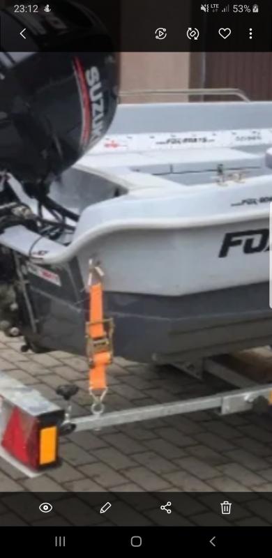 Tak się składa że w kwietniu odbieram foxsa 405 i będzie na tej przyczepce , do przyczepki dołożyłem z przodu trapy wygodniej się chodzi zdjęcia wstawiłem wcześniej i teraz co ważne z tyłu do rolki to jest 2 jak patrzysz od tyłu dołożyłem 2 rolki okrągłe poszeżając ją ponieważ ta łódka ma po środku dno szerokie bo tam jest możliwość w dziurę wstawić przetwornik dlatego tu musi być szeroka rolka . Jesteśmy z tego samego miasta możesz na żywo zobaczyć