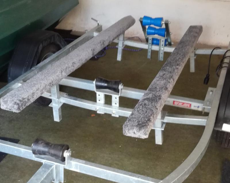 Ostatecznie można też zastosować widoczne ja wyższym zdjęciu podpory które są swego rodzaju kompromisem. Obłożone są materiałem gumopodobnym więc brudu nie łapią łatwo je wyczyścić, powierzchnia styku z łodzią jest większa niż rolek no i dają większa stabilność i jednak lepsze rozłożenie ciężaru.