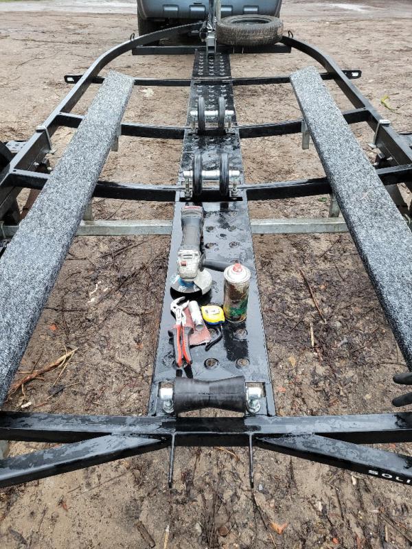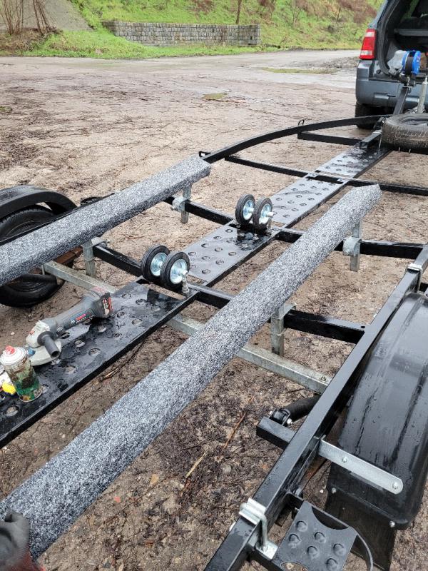 Ostatecznie można też zastosować widoczne ja wyższym zdjęciu podpory które są swego rodzaju kompromisem. Obłożone są materiałem gumopodobnym więc brudu nie łapią łatwo je wyczyścić, powierzchnia styku z łodzią jest większa niż rolek no i dają większa stabilność i jednak lepsze rozłożenie ciężaru.