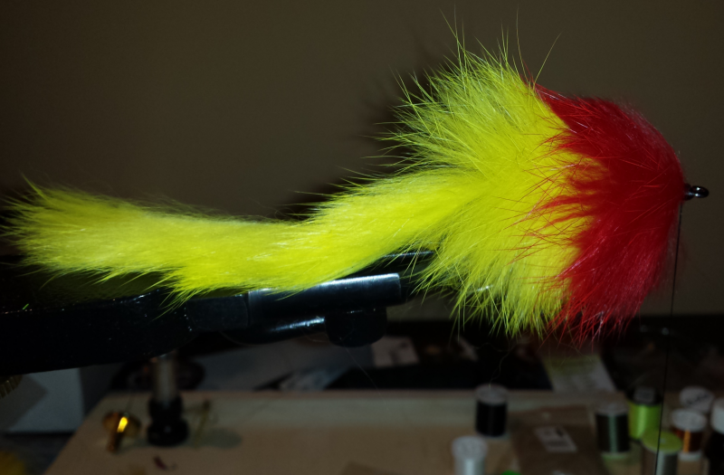 Dwa rodzaje czerwonych piór z genetyka Whiting; Owca Irlandzka Orange; Flashabou - Red; Crystal Hair - Hot Orange; Steve Farrar UV Blend - Black; SLF Hanks - Orange, Black; Ice Dub UV Hot Orange; Oczy 8mm; Klej UV ot cała tajemnica ;)